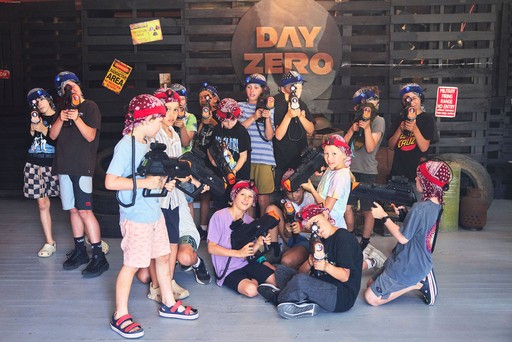 Day Zero is an immersive pop-up laser tag adventure for kids and grown-ups alike. Step into a playful post-apocalyptic world, the day after the big blast, and become the hero of your own story! Armed with laser blasters, players explore smoke-filled ruins, sneak behind barricades and bunkers, climb the watchtower, and team up to complete exciting missions.